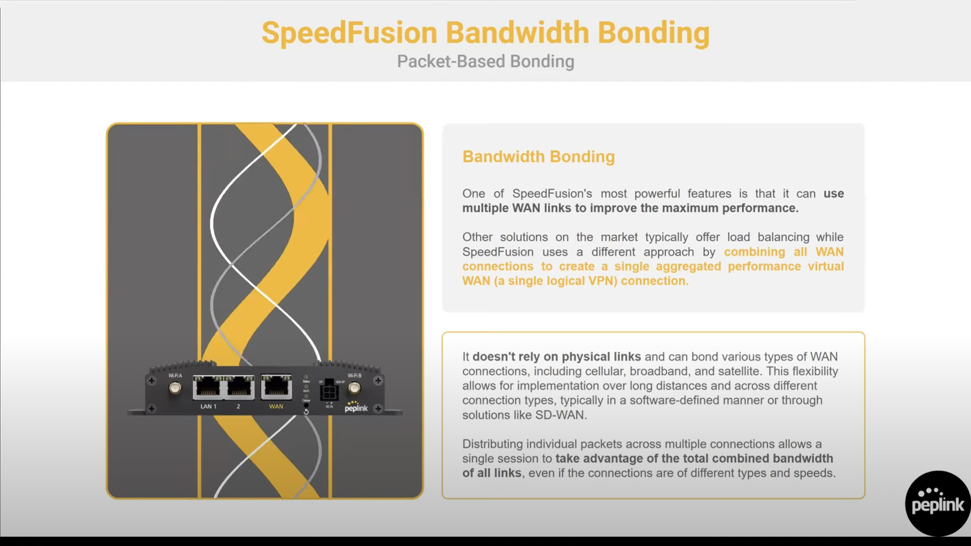 00:00 - Peplink’s SpeedFusion technology is a game-changer in the realm of multi-WAN load balancing. It offers reliable and cost-effective bonding solutions that not only address common misconceptions but also outperform traditional methods. This innovative approach ensures enhanced internet performance and stability, making it a preferred choice for businesses and individuals alike.